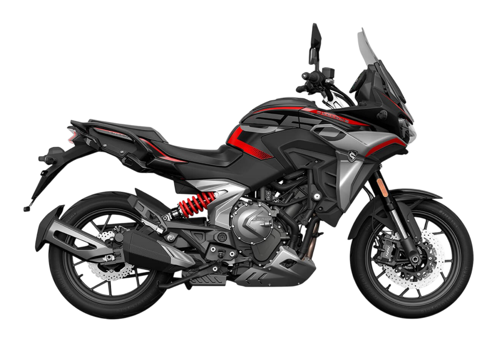 CYCLONE RX6 (SR650) – туристический эндуро для покорения самых непростых и протяжённых маршрутов. Он обладает агрессивным и современным дизайном, который выгодно выделяет его из всех остальных мотоциклов в своём классе. Мотоцикл дарит своему владельцу абсолютную свободу передвижения, позволяя долго и быстро ехать по шоссе, а при желании съезжать на такие дороги, по которым не проедет ни один дорожный мотоцикл. Небольшие габариты этого байка позволяют с успехом использовать его, как повседневный дорожный мотоцикл.Данная модель является самой крупнокубатурной в модельном ряде компании CYCLONE. Рядный двухцилиндровый четырёхтактный двигатель объёмом 650 см3 выдаёт мощность в 71 л.с. на 8500 об/мин. Максимальный крутящий момент достигается на 7000 об/мин и составляет 62 Н·м. Инжекторный впрыск топлива с блоком управления BOSCH увеличивает топливную экономичность, а также позволяет добиться высокой приёмистости и неприхотливости агрегата. Жидкостная система охлаждения не допустит перегрева двигателя даже при самом агрессивном вождении. На мотоцикл установлена 6-ступенчатая механическая коробка передач.Максимальная скорость мотоцикла составляет 180 км/ч.Модель оснащена литыми алюминиевыми дисками диаметром 17 дюймов. Колёса обуты в бескамерные покрышки от легендарной фирмы PIRELLI. С неровностями дороги эффективно справляются компоненты производства культовой японской компании KYB – телескопическая вилка перевёрнутого типа спереди и маятник с моноамортизатором сзади. Ход передней подвески составляет 130 мм, задней – 51 мм. Оба компонента подвески являются регулируемыми. Эффективное и безопасное замедление с любых скоростей обеспечивают гидравлические дисковые тормоза с двухканальной системой ABS спереди и сзади. Тормозные системы произведены известной испанской фирмой J.JUAN (входящей в легендарный холдинг BREMBO).Мотоцикл отличает хорошо продуманная компоновка с высоко расположенным радиатором. Высота 820 мм по седлу позволяет чувствовать себя комфортно даже райдерам небольшого роста. На данной модели установлена металлическая защита выхлопной системы и масляного фильтра. Под пассажирским сиденьем размещён небольшой, но крайне полезный набор инструментов.RX6 (SR650) оснащён бортовым компьютером с информативным цветным дисплеем и кнопками управления на руле, а также двумя штатными видеорегистраторами спереди и сзади. Из других приятных мелочей в допоборудовании мотоцикла стоит выделить регулируемое при помощи кнопки ветровое стекло, датчики давления в шинах, подсветку пультов, бесключевой доступ и 2 USB-порта.Клиренс мотоцикла составляет 165 мм. Объём топливного бака – 20 л. Снаряжённая масса – 245 кг.Мотоцикл сочетает в себе отличные технические характеристики, богатое оснащение, комфорт и надёжность, что позволяет вам ощутить настоящую свободу, отправившись на нём в любое путешествие.