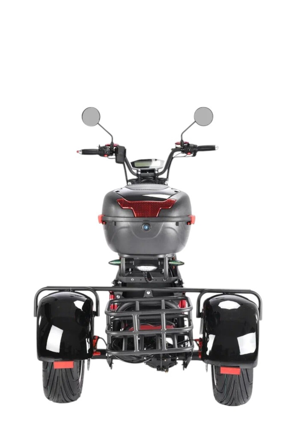 Электроскутер WHITE SIBERIA PRO TRIKE 3000W. Самый мощный и комфортный трицикл на российском рынке. Безопасный и надежный, он станет незаменимым помощником для людей, постоянно или сезонно проживающих за городом. Благодаря большой грузоподъемности (260 кг) и емкой АКБ, трицикл идеально подойдет для длительных поездок в магазин, в лес за грибами или ягодами, на рыбалку или для любых приятных прогулок.Предустановленная АКБ WS-PRO TRIKE+ 3000W позволит Вам проехать до 60 км на одном заряде. Хотите увеличить дальность пробега? Легко! Просто установите второй аккумулятор, и проезжайте до 100 км без дополнительной подзарядки.Обратите внимание на повышенную износостойкость данной модели: она прекрасно адаптируется к любым дорогам и погодным условиям, а при установке зимней резины трайк становится всесезонным. Модель «+» получила повышенный клиренс и новую настраиваемую подвеску, которые особенно порадуют тех, кто планирует передвигаться по грунтовым дорогам и серьезному бездорожью.На данной модели имеет мощность 3000 Вт и относится к тяговому типу двигателей. Новая версия, в отличие от старой, имеет сертификат ECC (европейский стандарт) и относится к категории самых дорогих редукторных моторов, выпускаемых на данный момент. Максимальная скорость составляет 50 км/ч, в зависимости от веса райдера, рельефа и погодных условий. Состоит из светодиодных ламп. LED-оптика яркая, заметная и потребляет электричество экономно. Она обеспечивает отличное освещение и безопасность при движении на дорогах.Преимущества:Грузоподъемность до 260 кг;Мотор тягового типа мощностью 3000 Вт;Возможность всесезонной эксплуатации;Комфортная и динамичная езда благодаря 10–дюймовым колёсам;Большое и мягкое сиденье;Настраиваемая подвеска;Безопасное передвижение в темное время суток;Обновленная тормозная система с возможностью регулировки;Быстросъёмный аккумулятор с балансировочной платой;Возможность установить вторую батарею и проезжать до 100 км;Большие, интуитивно понятные кнопки управления;Бортовой компьютер с LED-дисплеем;Большие зеркала без искажения;Держатель телефона с USB;Вместительный бокс и сетка-багажник.Стоит обратить внимание на ручки газа, которые сделаны из алюминия с каучуковой прослойкой. Ручки тормоза имеют возможность настройки фиксации в удобном для ваших пальцев положении. Кнопки переключения скоростей и света выполнены в классическом стиле. Скутер может проехать до 100 км на одном заряде при установке двух батарей. В комплектации с предустановленной АКБ — до 60 км. Батарея сертифицирована и обладает умной BMS платой 40A, которая защищает АКБ от перезаряда и перегрузок, тем самым продлевая срок службы в циклах.Классическое сиденье, единое для всей линейки моделей WS. Оно мягкое, широкое, удобное и прекрасно подходит для длительных поездок. Верх сиденья отделан прочной и долговечной эко-кожей, которая устойчива к воздействию влаги и ультрафиолета. Выполнен из прочного пластика. Держатель бокса рассчитан на нагрузку до 50 кг., а верхняя крышка оснащена надежным фиксатором. В корпус встроен катафот и предусмотрено место для установки дополнительного света. При желании, Вы можете демонтировать бокс и установить на его место классическую спинку для второго пассажира, которая идет в комплекте.На модели установлен большой LED-дисплей, отображающий скорость, заряд бата