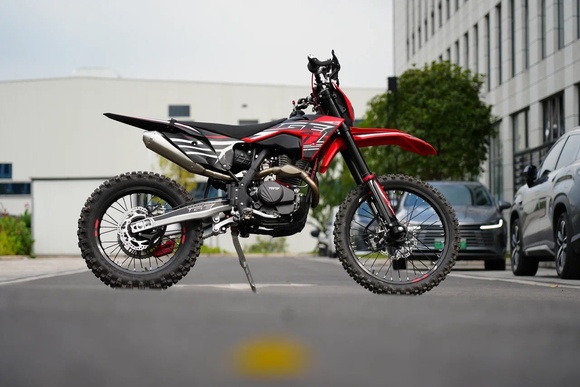 Мотоцикл GE Ranger YB300R представляет собой современный эндуро-байк, разработанный для активного катания по пересечённой местности и внедорожных приключений. Он сочетает в себе надежный двигатель, качественные компоненты подвески и продуманный дизайн, обеспечивая отличную управляемость и комфорт.Сердцем модели является 4-тактный одноцилиндровый двигатель Loncin YB300R объёмом 300 см³ с воздушным охлаждением. Электростартер облегчает запуск двигателя, а механическая 6-ступенчатая коробка передач позволяет полностью контролировать динамику и скорость мотоцикла.Передняя и задняя подвески MNT обеспечивают отличное демпфирование и стабильность на любых покрытиях. Передняя перевернутая вилка диаметром 41 мм с регулировкой сжатия и отскока, а задняя прогрессивная подвеска с алюминиевым маятником позволяют уверенно преодолевать препятствия и неровности трассы.Модель оснащена гидравлическими дисковыми тормозами диаметром 260 мм спереди и 220 мм сзади, что гарантирует эффективное торможение и безопасность. Дополнительно предусмотрена защита двигателя, защита рук, цифровая приборная панель и LED-освещение, обеспечивающие комфорт и контроль во время езды.GE Ranger YB300R идеально подходит для райдеров, которые ценят надёжность, динамику и уверенность на любых трассах. Этот мотоцикл сочетает передовые технологии и прочные компоненты, позволяя наслаждаться внедорожными приключениями без ограничений.