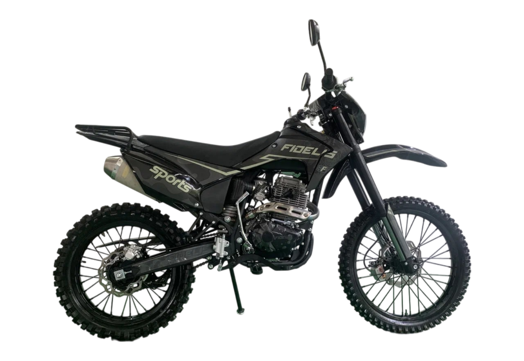 Мотоцикл Fidelis Sport PR300 (175FMN) — это стильный и мощный внедорожный мотоцикл, созданный для любителей экстремальной езды и активного отдыха. Он сочетает в себе современный дизайн, надежную конструкцию и высокую производительность, что делает его отличным выбором для покорения бездорожья, участия в мотокроссах или просто для получения удовольствия от езды по сложным трассам.Основные характеристики:Двигатель: 4-тактный одноцилиндровый двигатель объемом 300 куб. см с воздушным охлаждением. Этот мотор обеспечивает высокую мощность и крутящий момент, что позволяет легко преодолевать сложные участки дороги.Трансмиссия: 5-ступенчатая механическая коробка передач, которая обеспечивает плавное переключение и полный контроль над мотоциклом в любых условиях.Подвеска: Длинноходная передняя вилка и задний моноамортизатор обеспечивают комфорт и устойчивость на неровных поверхностях, эффективно поглощая удары и вибрации.Тормоза: Дисковые тормоза на обоих колесах гарантируют надежное и эффективное торможение даже на высоких скоростях или в сложных условиях.Колеса: Прочные спицованные колеса с внедорожными покрышками обеспечивают отличное сцепление с грунтом, песком, грязью и другими типами поверхностей.Дизайн: Агрессивный и современный внешний вид с защитными элементами, такими как дуги, пластиковые крылья и прочная рама, подчеркивает спортивный характер мотоцикла.Вес: Легкая конструкция (около 120-130 кг) делает мотоцикл маневренным и простым в управлении.:Идеален для езды по бездорожью, лесам, горам и другим сложным ландшафтам.Простота в обслуживании благодаря надежной конструкции и доступным запчастям.Высокая мощность двигателя позволяет легко преодолевать сложные участки дороги.Универсальность: подходит как для активного отдыха, так и для тренировок или соревнований.Для кого:Fidelis Sport PR300 (175FMN) — это отличный выбор для тех, кто ищет мощный и надежный внедорожный мотоцикл. Он подойдет как для новичков, так и для опытных райдеров, которые хотят покорять бездорожье, участвовать в мотокроссах или просто наслаждаться активным отдыхом на природе.